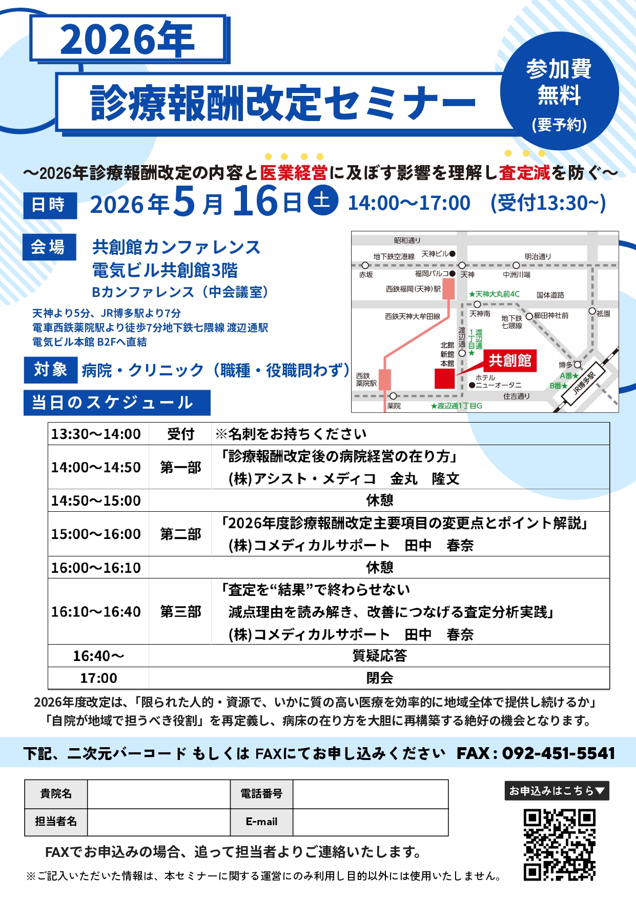 2026年診療報酬改定セミナーのご案内(弊社主催)